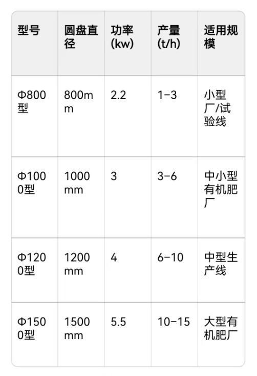 六、技术参数(有机肥常用标准型号)